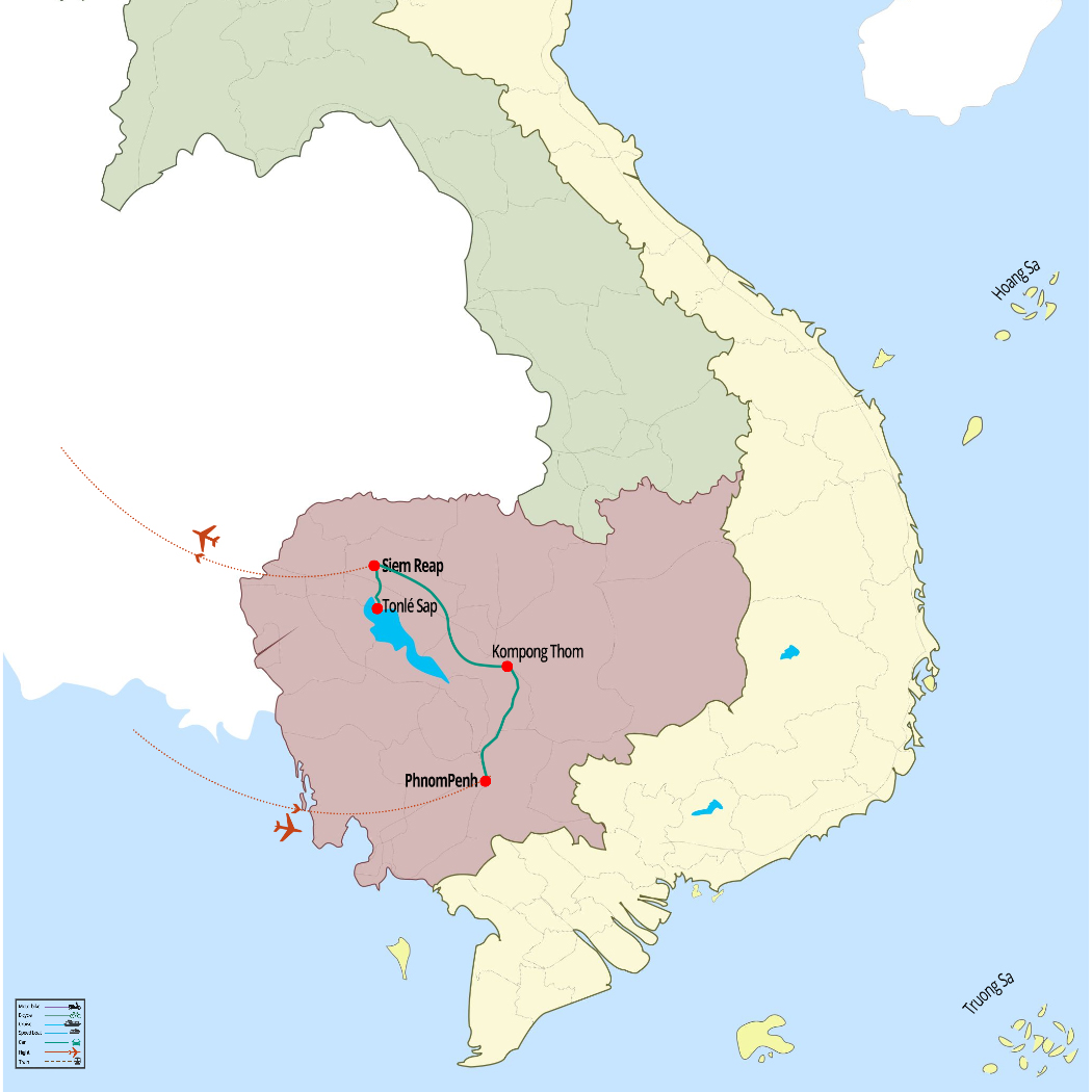 Ce circuit de 6 jours propose une découverte complète du Cambodge, en combinant la capitale politique et historique du pays avec son site archéologique le plus emblématique. Le voyage débute à Phnom Penh, où vous explorez les principaux monuments révélant l’histoire récente et le patrimoine royal, avant de rejoindre Siem Reap par la route. Le programme se poursuit par la découverte d’Angkor et de ses environs, mêlant temples majeurs, vie locale et excursion en bateau sur le lac Tonlé Sap. Bien rythmé et conçu pour une visite confortable, cet itinéraire offre une immersion culturelle riche sans effort physique important.